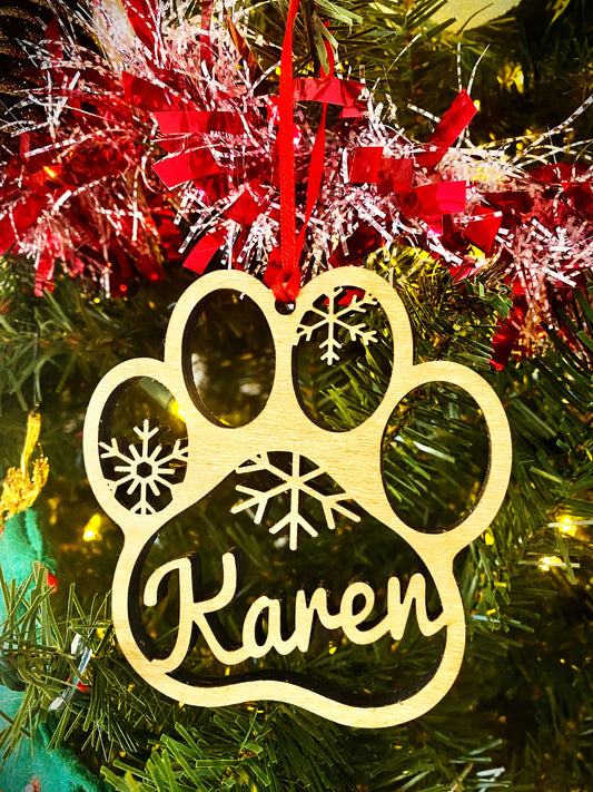 Personalized Dog Paw Print Christmas Tree Ornament