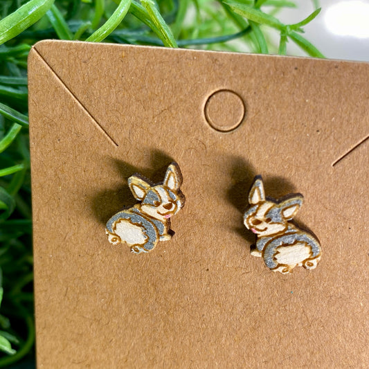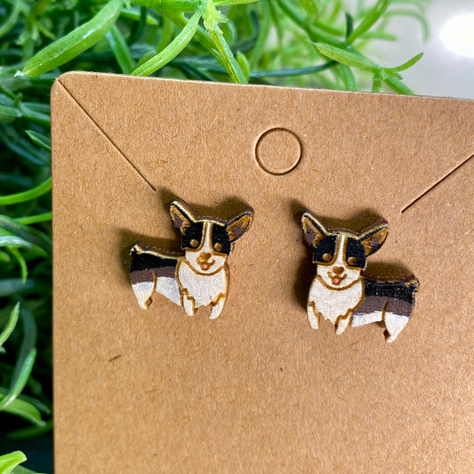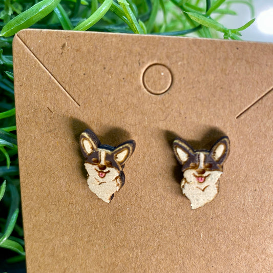 Corgi Happy Face Mirror and Wood Dangle Earrings