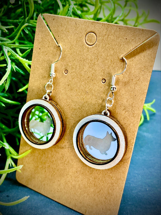 Corgi Silhouette Mirror and Wood Dangle Earrings