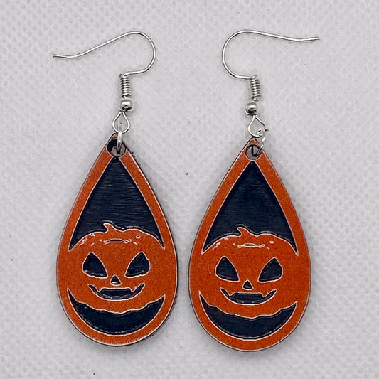 Wood & Autumn Leaves Inset Acrylic Earrings