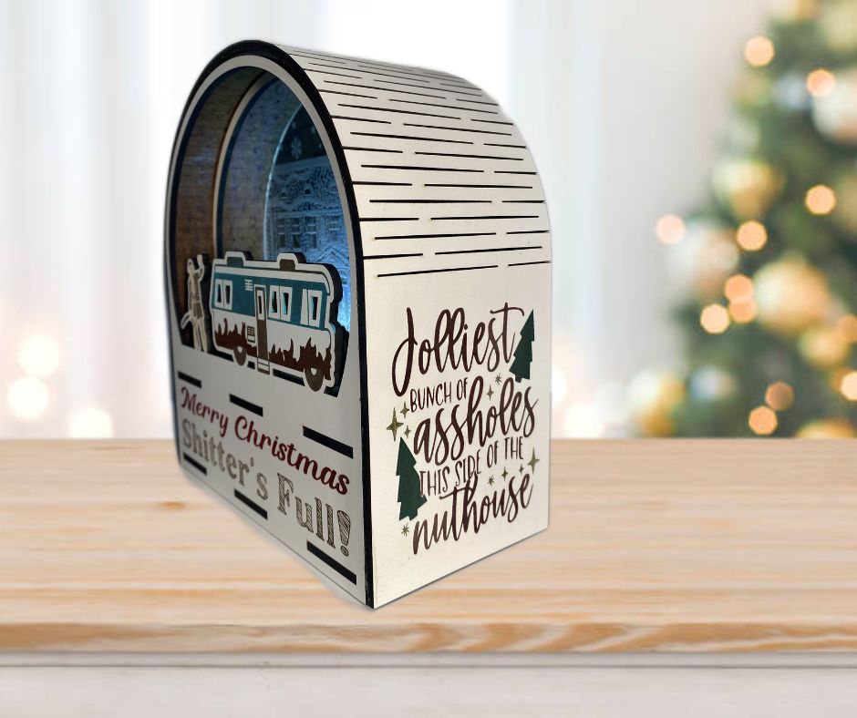 Light up your holiday with this Griswold inspired LED light globe! Choose from natural color MDF or white/multi-colored hardboard. Approx. 6" x 6.5". LED light included! (requires 3 AAA batteries)