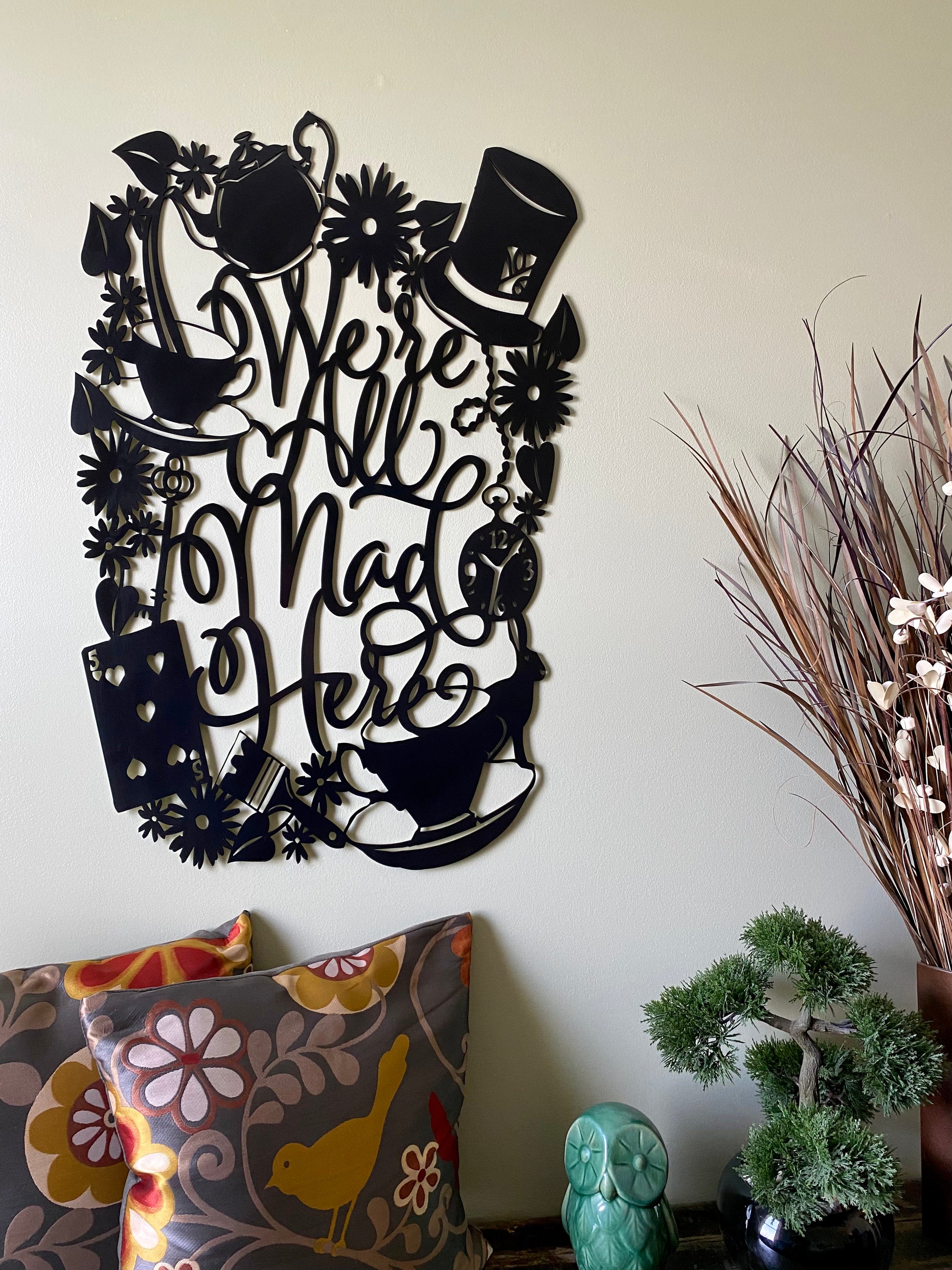 We’re All Mad Here Alice In Wonderland Cut Out Wall Hanging. Wood hardboard. *for indoor use only