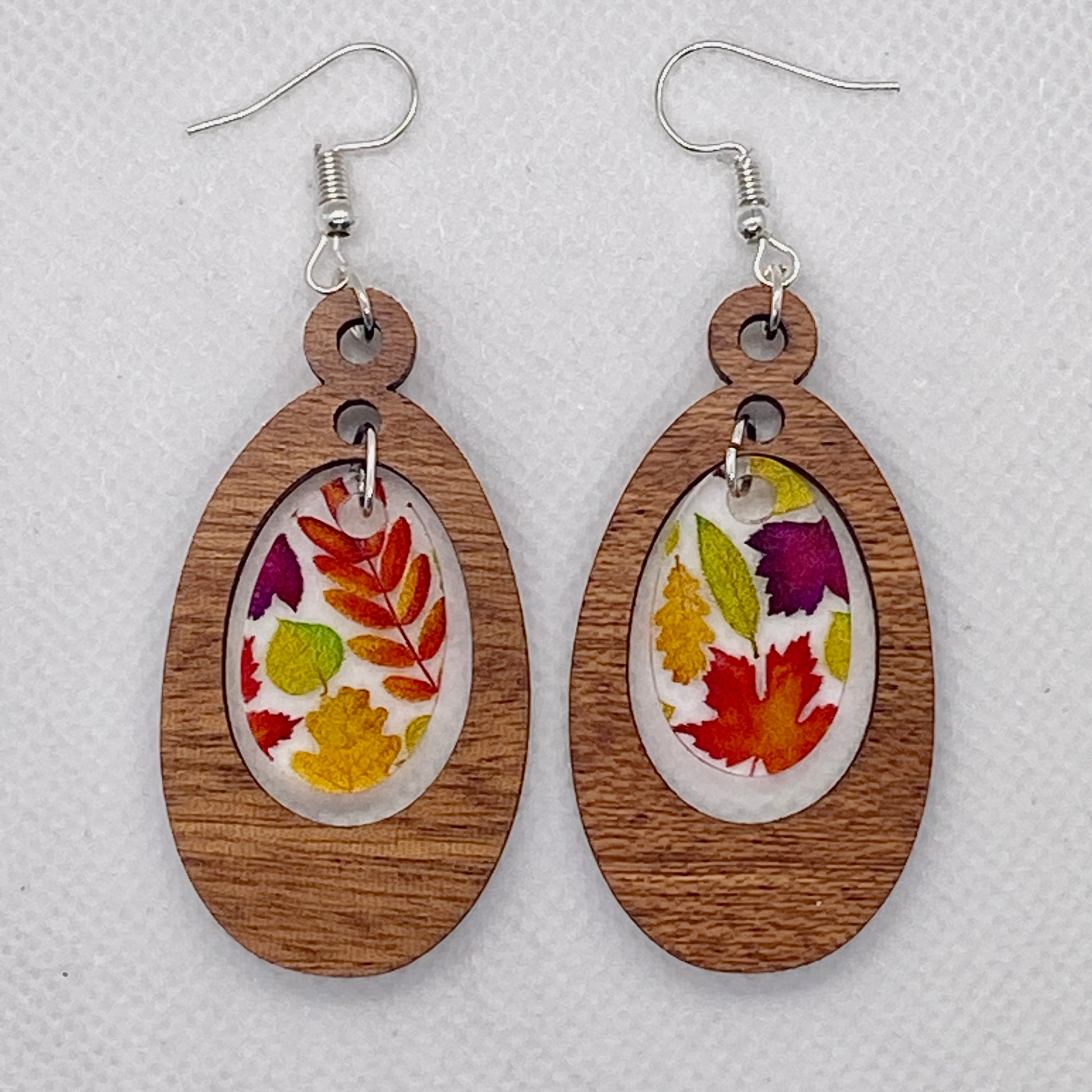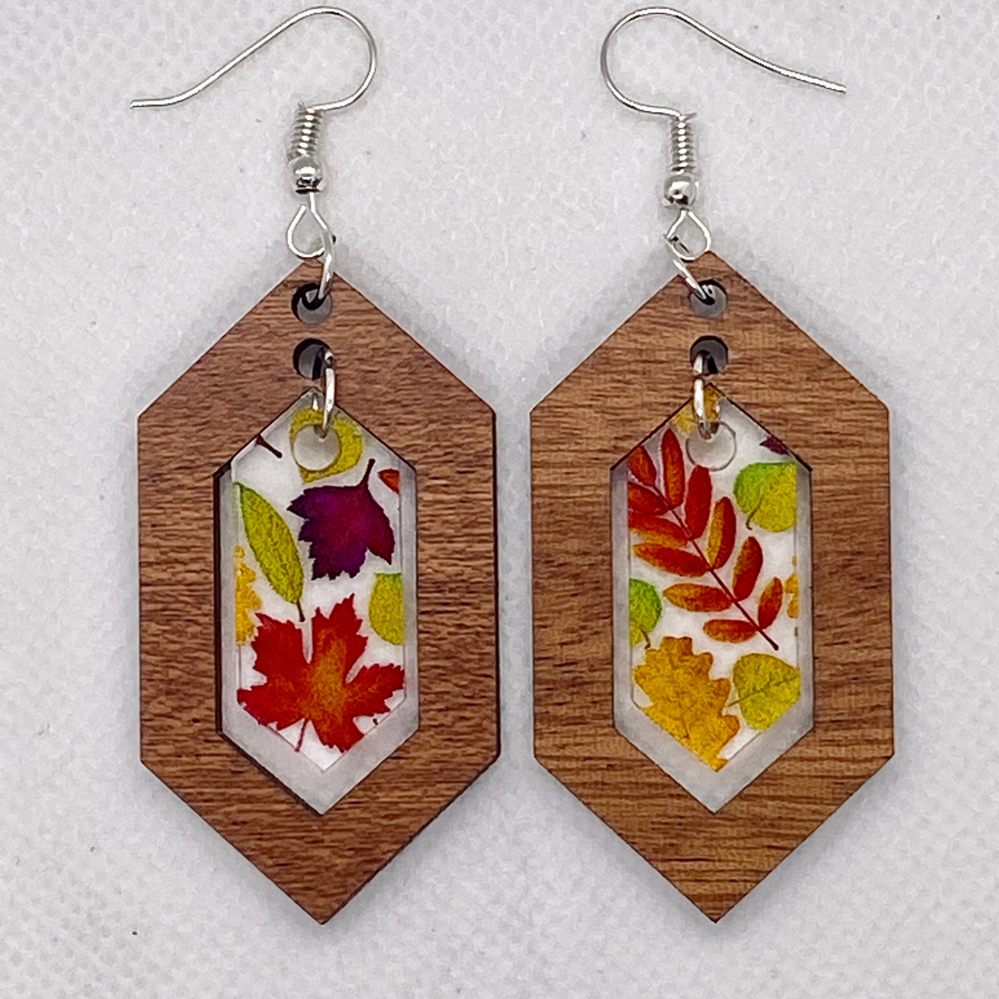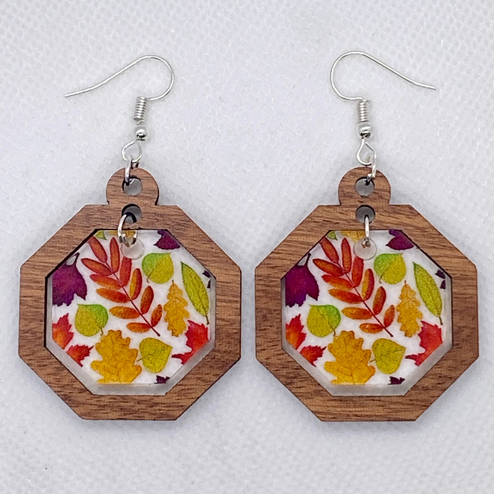 Wood & Autumn Leaves Inset Acrylic Earrings